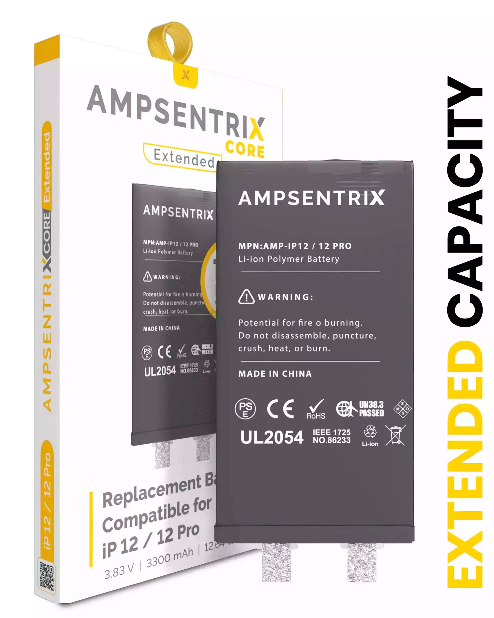 Batería de repuesto de alta capacidad compatible con iPhone 12/12 Pro (requiere soldadura por puntos) (AmpSentrix Core Extended)