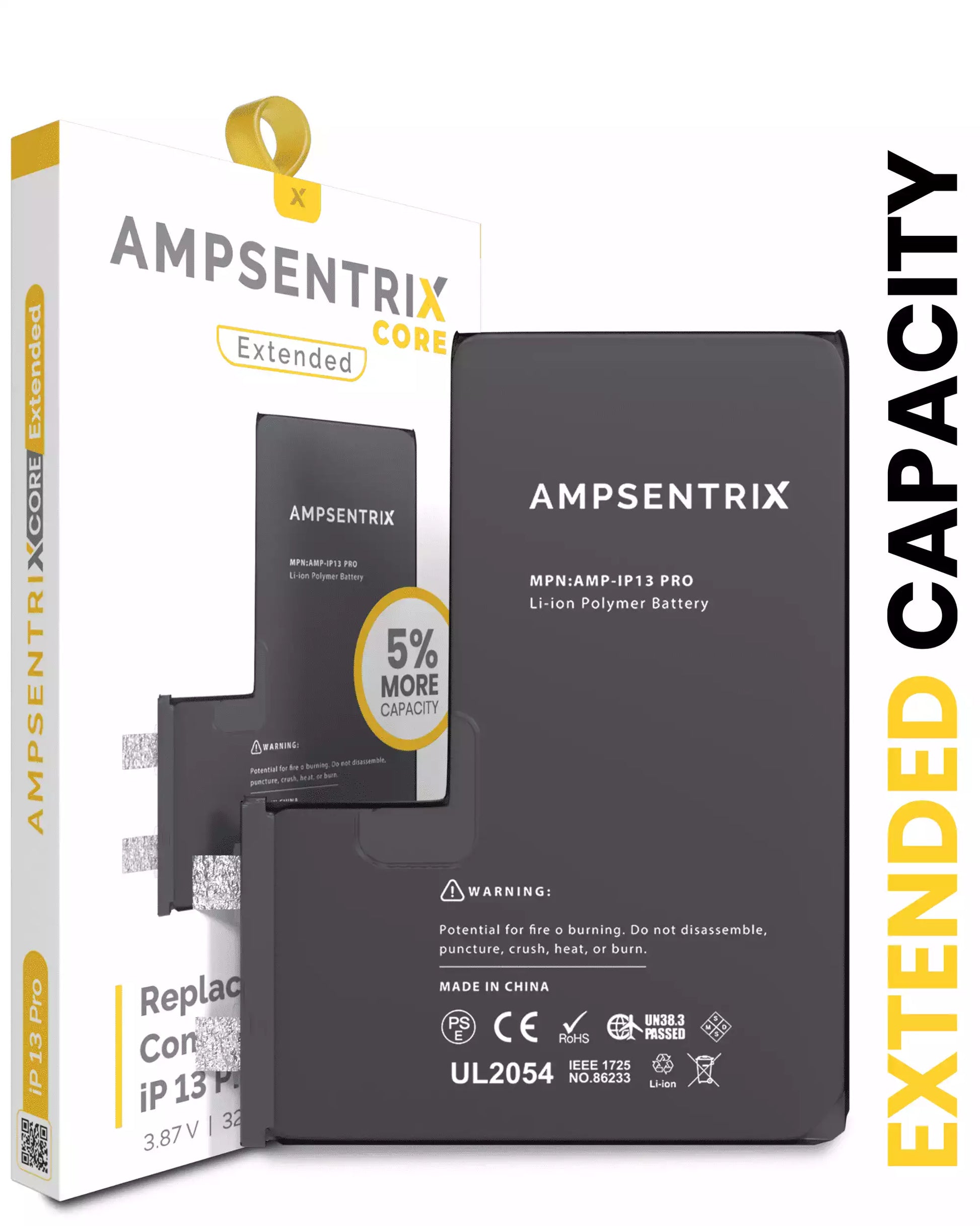 Batería de repuesto de alta capacidad compatible con iPhone 13 Pro (requiere soldadura por puntos) (AmpSentrix Core Extended) Funcionalidad Asegurada.