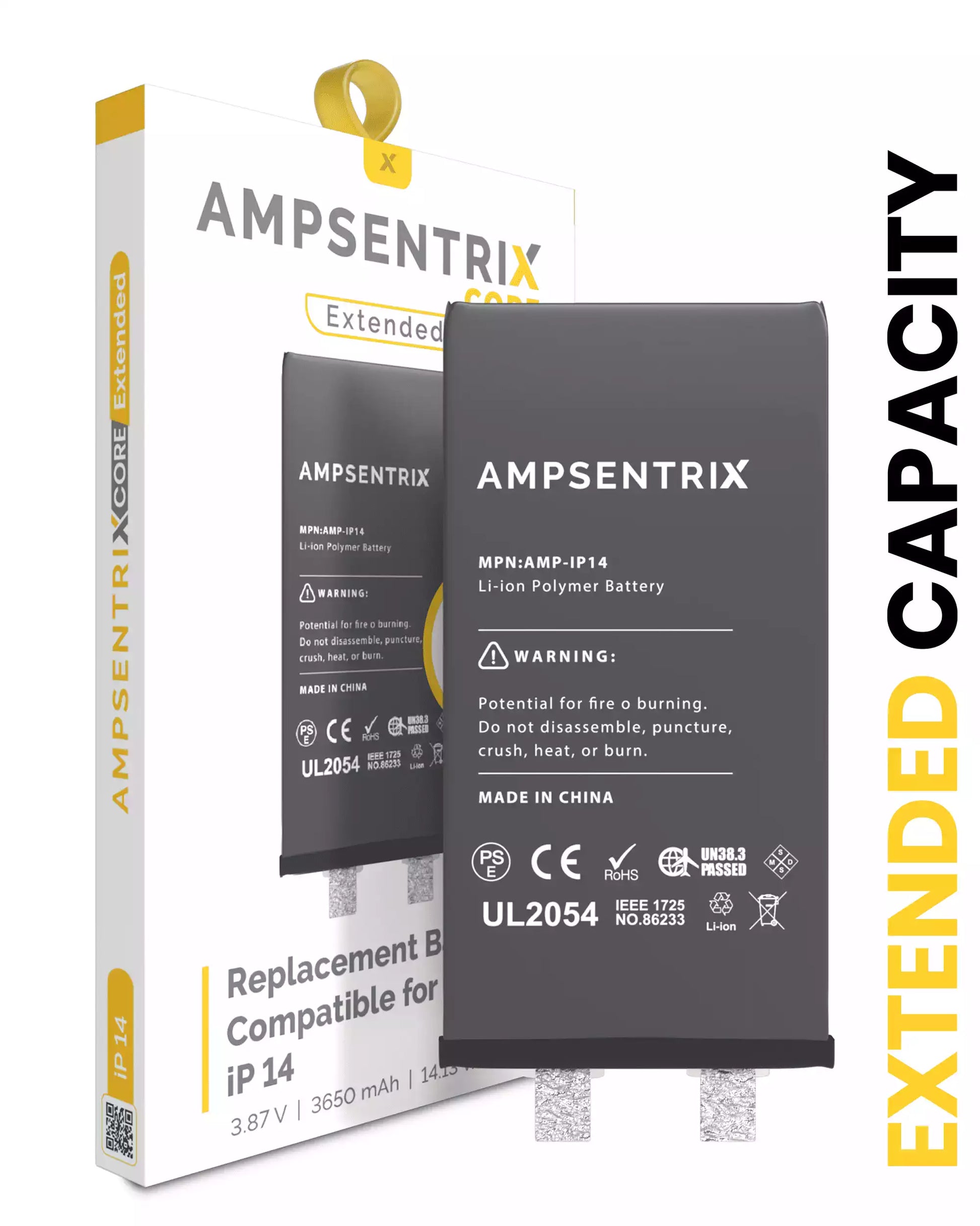 Batería de repuesto para iPhone 14 (requiere soldadura por puntos) (AmpSentrix Core Extended)