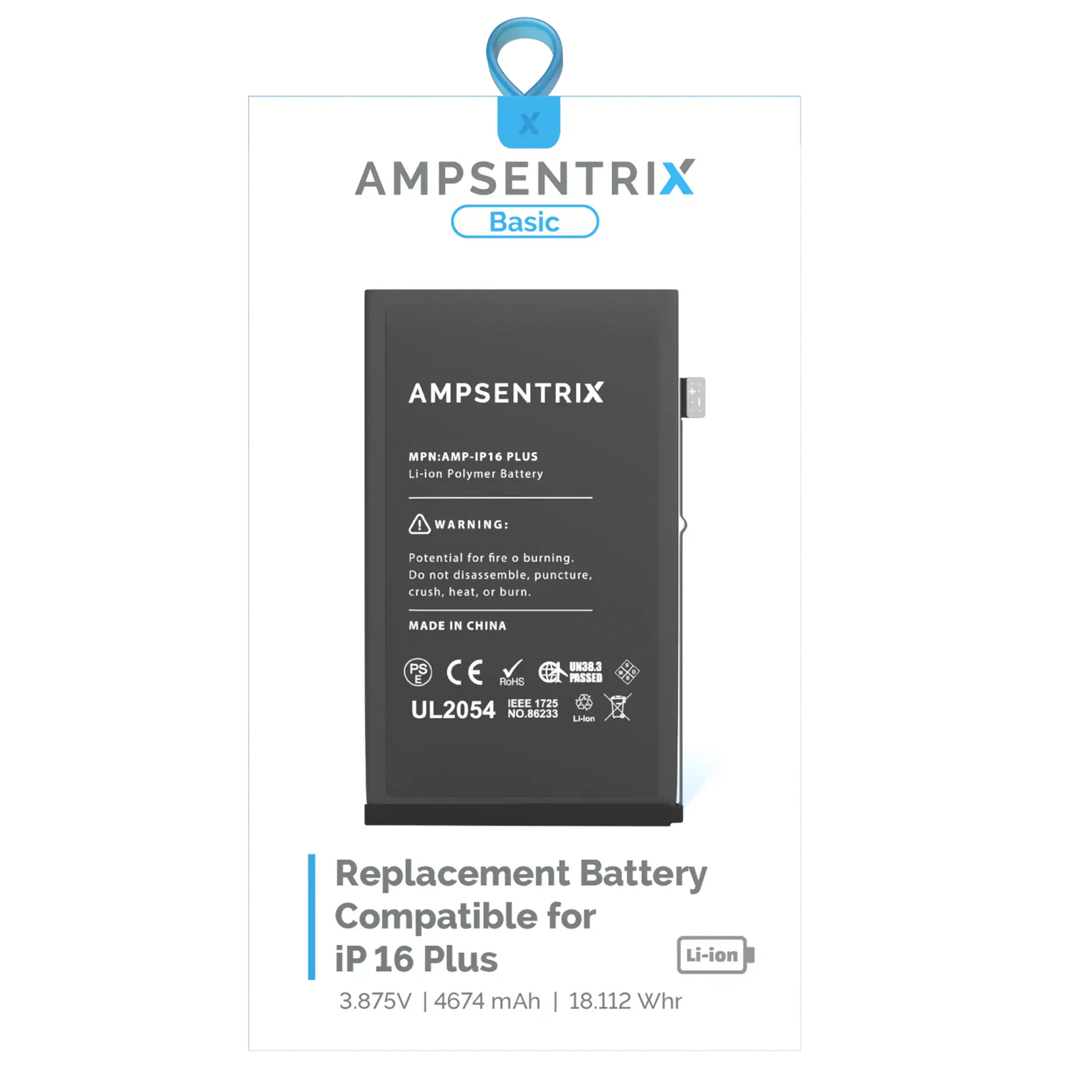 Batería de repuesto para iPhone 16 Plus (AmpSentrix Basic)